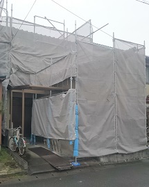 まずは、足場を組む際に足場の組み立てや塗装の障害となってしまう建物周りのお荷物などを移動させていただき、汚れないようにビニールなどで覆います。