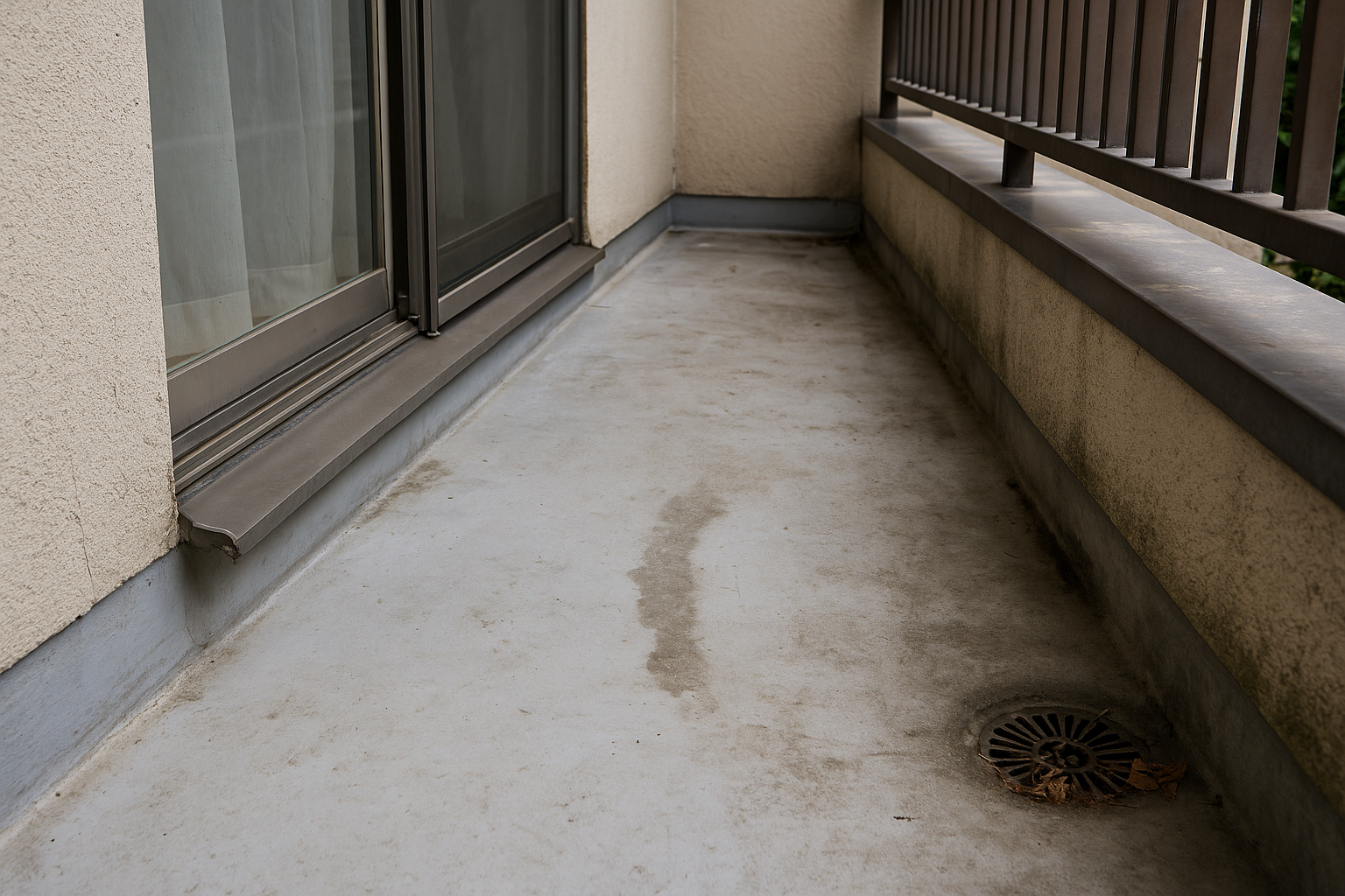 ベランダやバルコニーは、建物の外に突き出た「床」であり、本質的に雨水を受け止め、溜めやすい構造をしています。