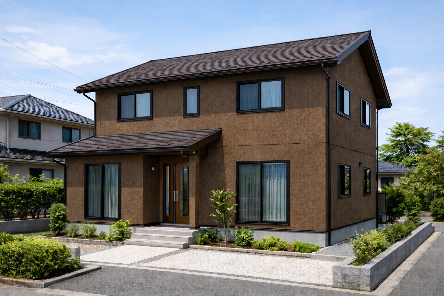 外壁の色選びで「落ち着いた雰囲気にしたい」「温かみも欲しい」「景観に馴染ませたい」という方に人気なのが、ブラウン(茶)です。
