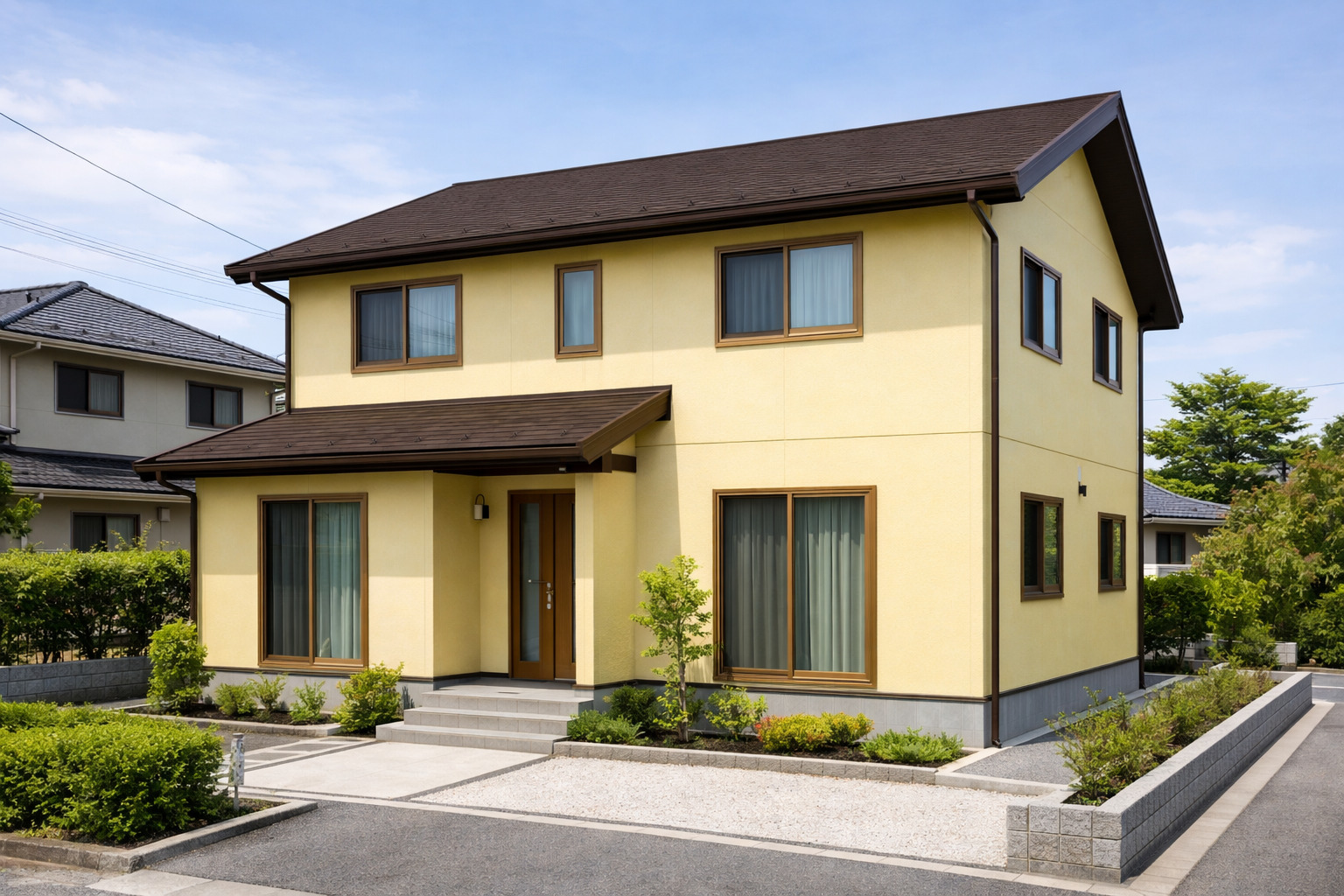 - 道路沿いは排気汚れが出やすいので、クリーム寄りで少し落ち着かせる