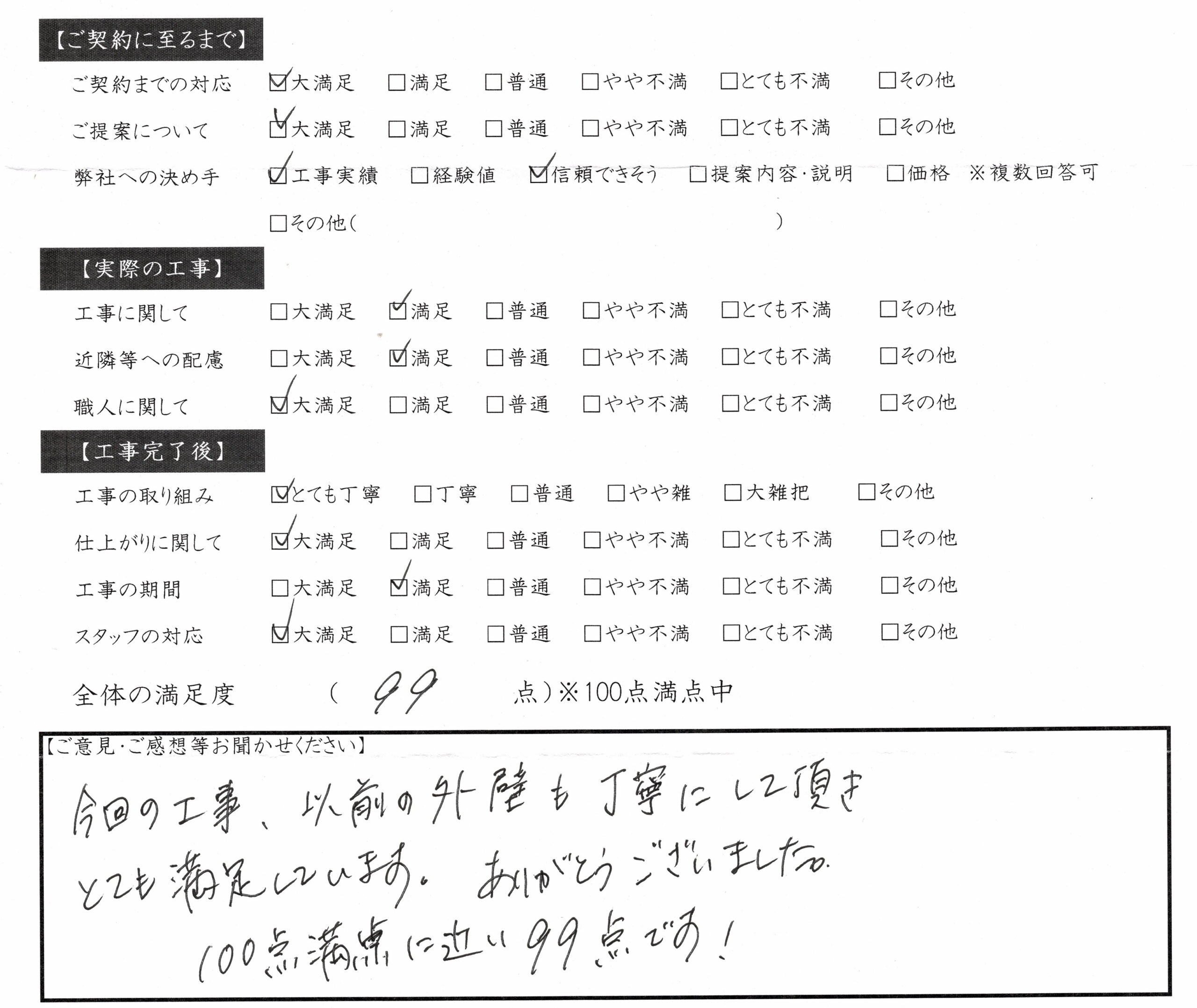 今回の工事、以前の外壁も丁寧にして頂きとても満足しています。