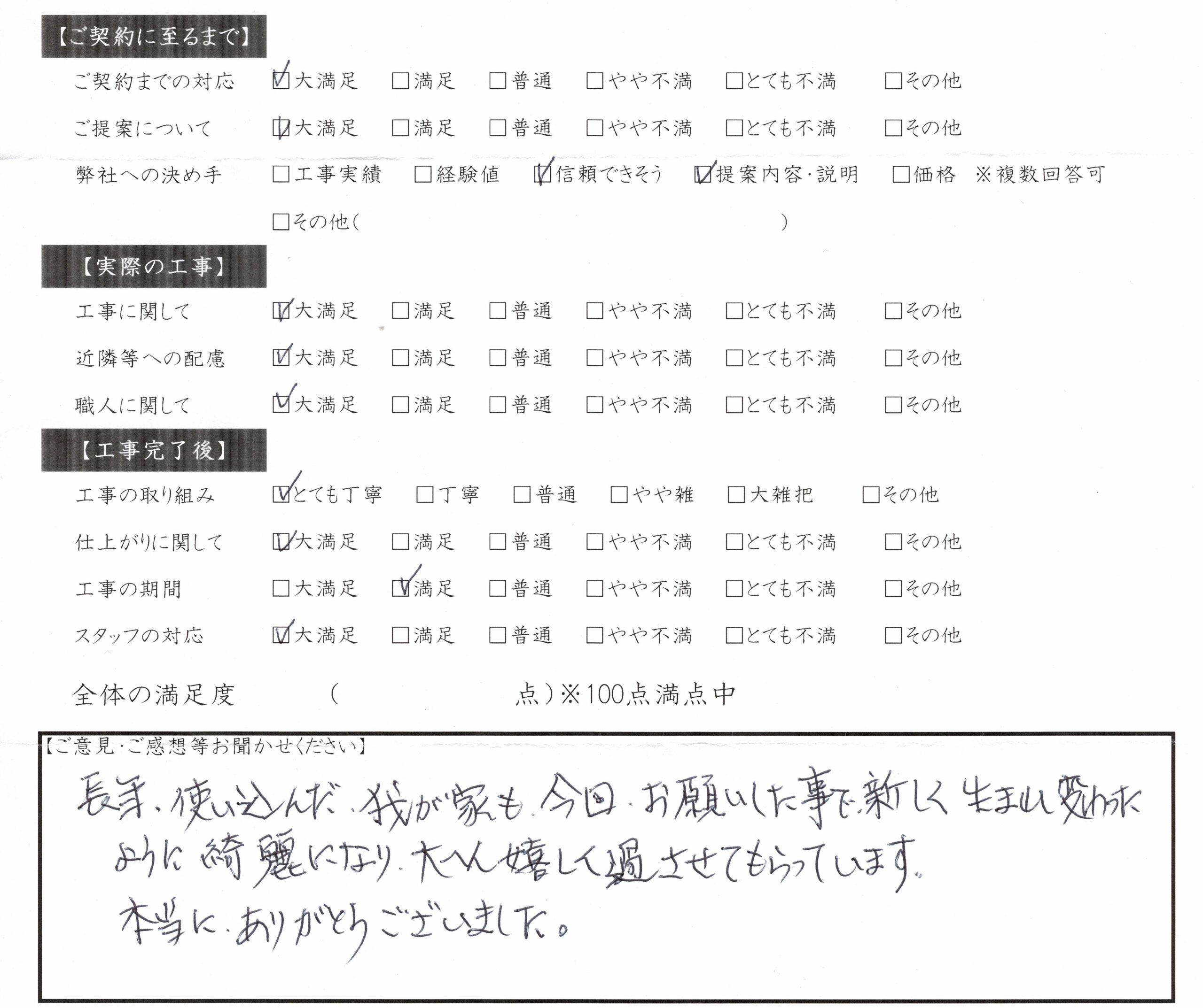 長年、使い込んだ我が家も今回お願いしたことで新しく生まれ変わったように奇麗になり大変うれしく過ごさせてもらっています。